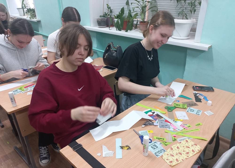 После знакомства с данным феноменом студенты приступили к созданию книжек-раскладушек с портретами поэтов, текстами манифестов, стихотворными строками, рисунками.