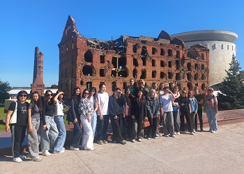 Далее экскурсанты побывали на территории музея-панорамы «Сталинградская битва», где осмотрели легендарную экспозицию под открытым небом – Дом Павлова, мельницу Гергардта, фонтан «Танцующие дети». В самом музее студенты посетили крупнейшую панораму России «Разгром немецко-фашистских войск под Сталинградом».