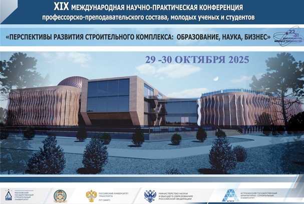 29–30 октября 2025 г. на базе Астраханского государственного архитектурно-строительного университета будет проходить XIX Международная научно-практическая конференция «Перспективы развития строительного комплекса: образование, наука, бизнес».